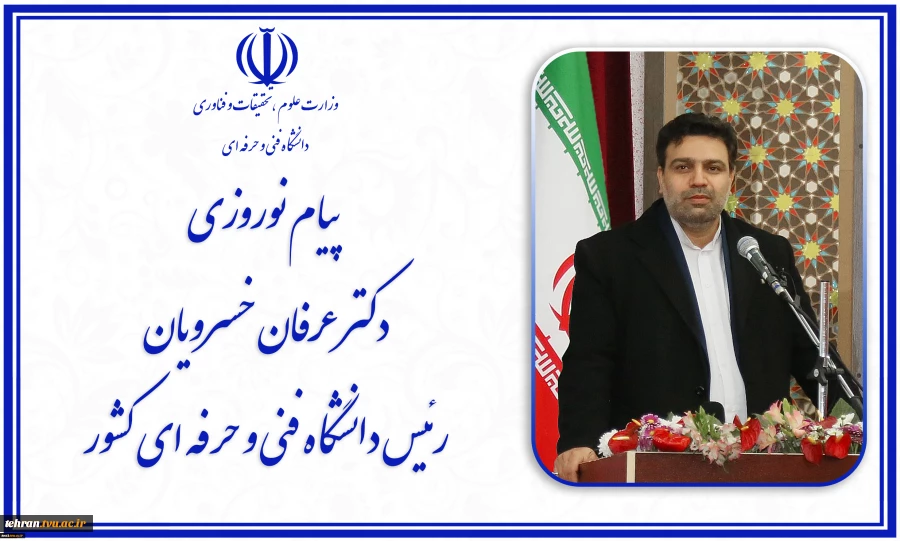 امتیاز دهید : پیام نوروزی دکتر عرفان خسرویان رئیس دانشگاه فنی و حرفه ای کشور 2 یکشنبه 24 اردیبهشت 1402 ساعت 9:58
