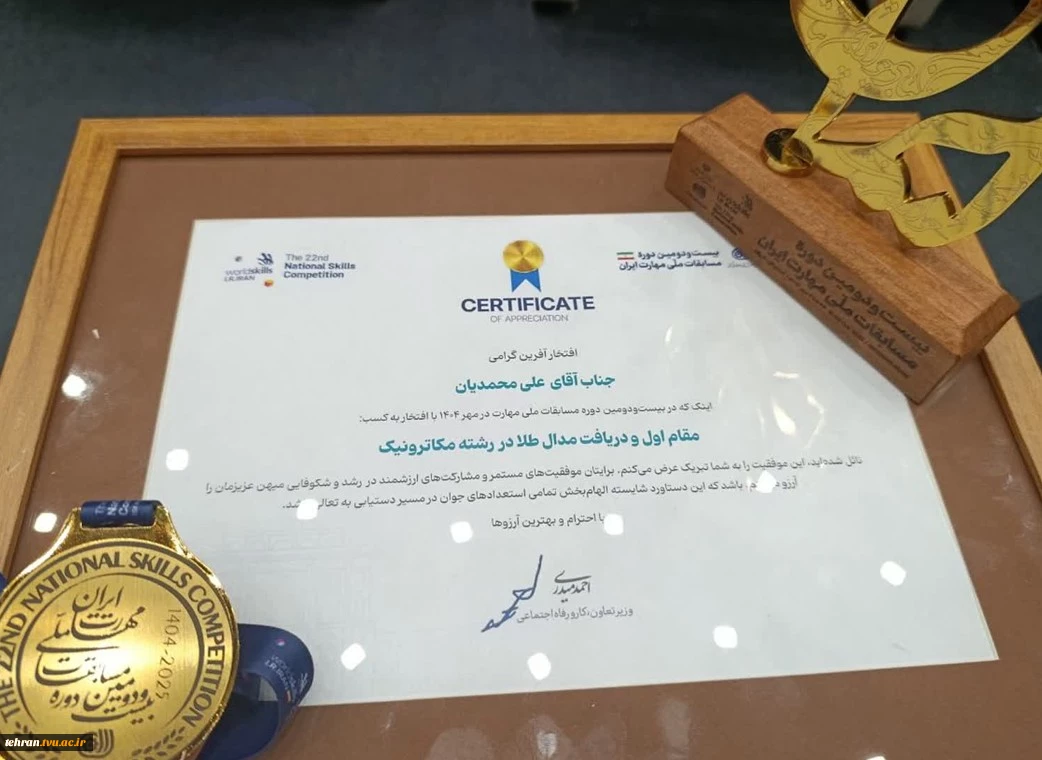 امتیاز دهید : کسب مدال طلای رشته مکاترونیک توسط دانشجوی دانشکده فنی انقلاب اسلامی تهران در مسابقات ملی مهارت ایران 7 سهشنبه 6 آبان 1404 ساعت 17:05